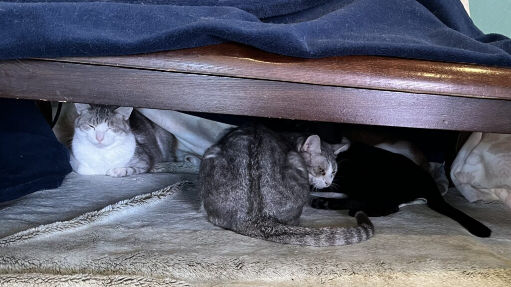 ひきこもり兄弟暖かくなってこたつやホットカーペットに執着する子も少なくなった中、サバ白兄弟のトムとタフィーはこたつにひきこもり気味。トムは夕方にはでてきて雄たけびをはなっ… -