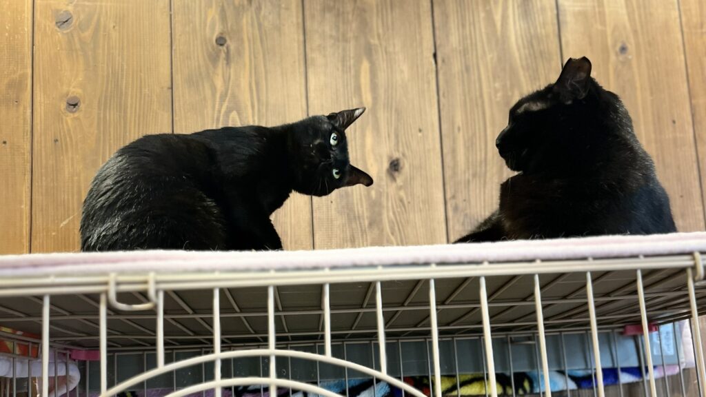 可愛い仲裁役ゴルゴとれいじが対峙してにらみ合い唸りあいの喧嘩😡他のニャンスタッフたちもどうなる事かと見守る中、仲裁に入ったのがまさかのムチャ🤣間に入ってい… -