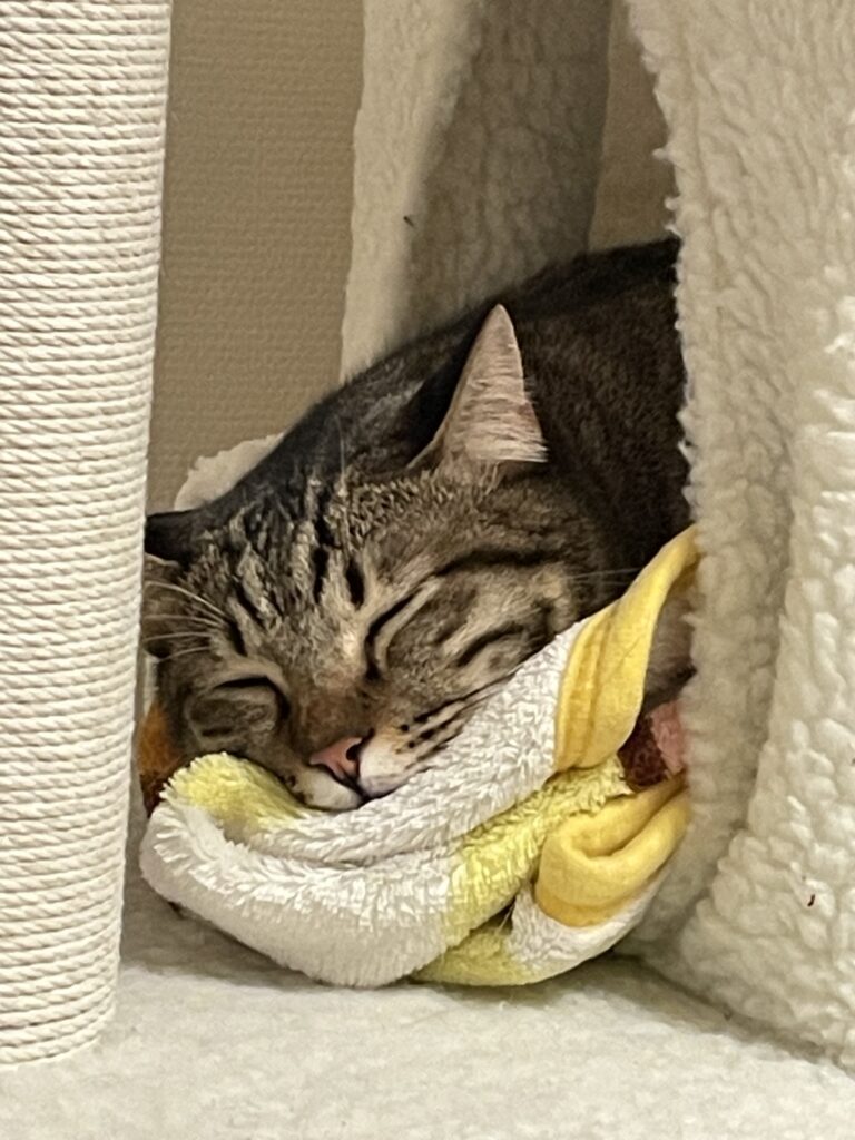 こめまるくんとビビ(こな)ちゃんの里親さんからお写真をいただきました。すっかり落ち着いた様子で里親さんも家族一同メロメロになっていらっしゃる様子🥰キャットタワーを購入してもらってニャルソックやくつろぎにいそしんでるそうです。朝は階段下で待ち構えてくれているそうです。みなさんの癒しになっているようです。