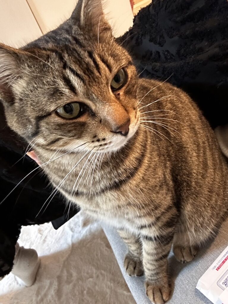 小四郎は、2023年2月にすーにゃんにやってきました。過酷な環境から保護された小四郎。すーにゃんでは、そんな環境の影響を微塵も見せないとても人懐っこい優しい猫ちゃんでした。撫でられるのが大好きで、お腹も触らせてくれて、名前を呼ぶと返事をしてくれるおしゃべり猫。他のニャンスタッフとも、ほとんど、もめることはありませんでした。その頃、やんちゃ盛りだったもっちの相手を唯一してくれていて、おかげでもっちも大分、他のニャンスタッフに馴染めたようでした。保護主さん経由で里親さんの申し込みがあり、すーにゃんでお見合いの後、動物が大好きなご家族とご親戚のいるお家の娘さんの所へ。優しい里親さんのところで、今は、更に甘えん坊になって里親さんにべったりだそうです💕幸せだねぇ💕