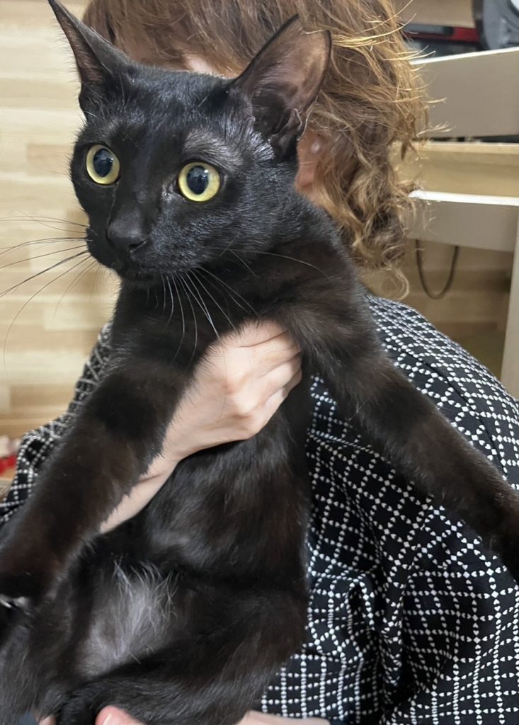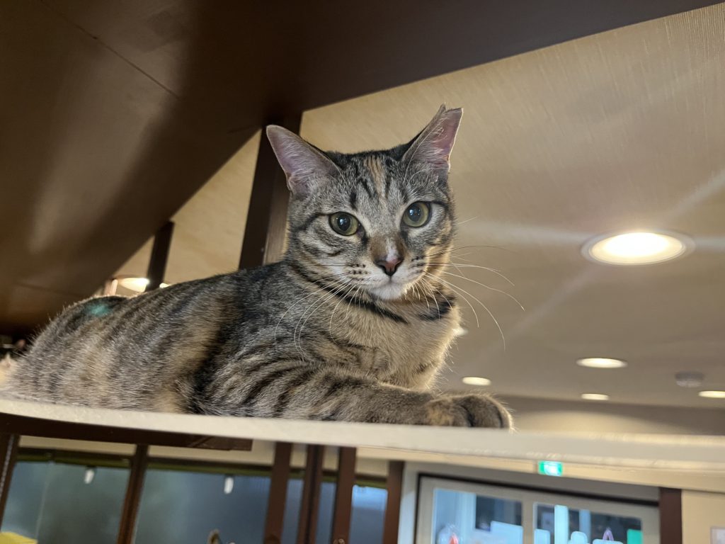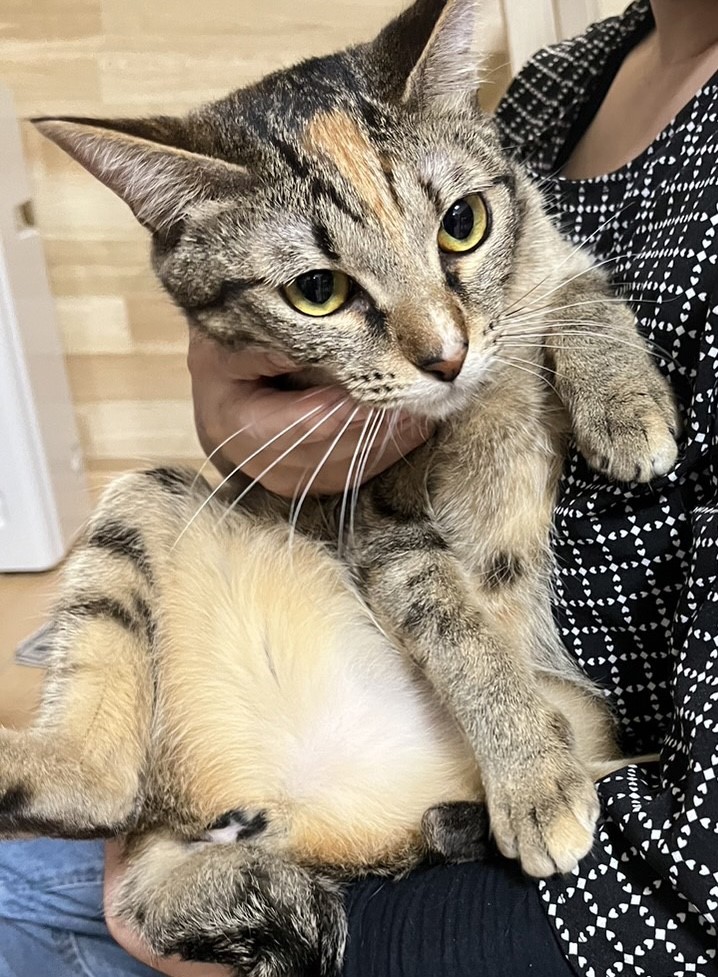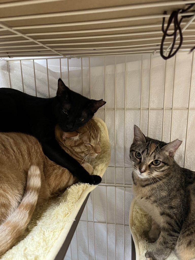 新入りニャンスタッフを紹介させていただいたので、その子たちの姉妹のしあわせ通信をお知らせします。まず最初に里親さんに見初められたのは、茶トラの「ジャイアンくん」。名前とは裏腹にとても人懐っこく優しく食いしん坊😁。小さいお子さんのいるお宅でとても可愛がられていました。その後、里親さんご夫婦のお眼鏡に叶ったのは、「エルメスちゃん」と「プラダちゃん」の姉妹。短いかぎしっぽが特徴のお転婆姉妹でした。ジャイアンくんもしっかりと姉妹の面倒を見てくれてとても楽しく暮らしています。先日、里親さんご夫婦にご来店いただき、「ナイキ」と「ディオール」が兄妹だとお伝えすると、「やっぱり!よく似てる」と感動されていました。プラダちゃんは、ジャイアンくんの事が大好きでくっついて歩いているそうです。