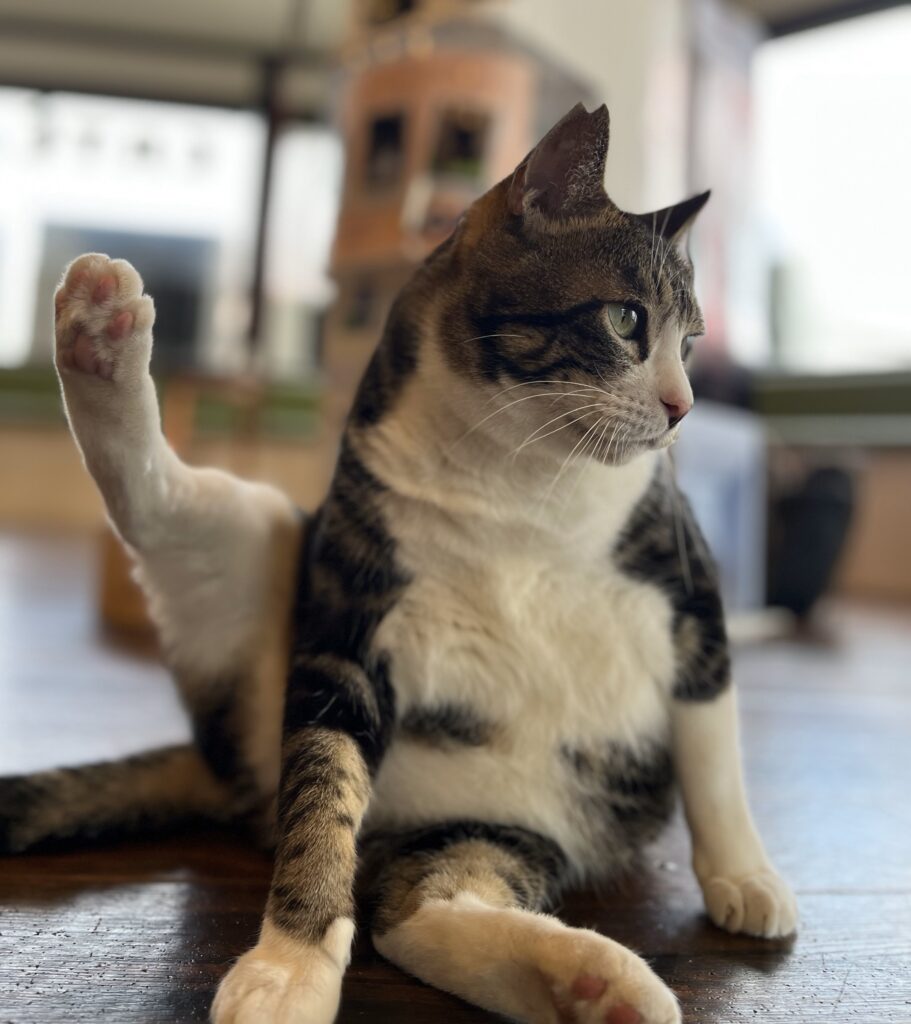猫は、基本的に単独で行動し生活するので犬のように群れ全体を統一するボスはいません。ただ、ボス的な役割を果たす猫もいます。すーにゃんのニャンスタッフ達の中では「シンバ」がその存在になるでしょうか?ボス猫は体の大きい猫がなる事が多いようなのでその点では当てはまっていますね。なんせ、8.5㎏の巨漢なので💦