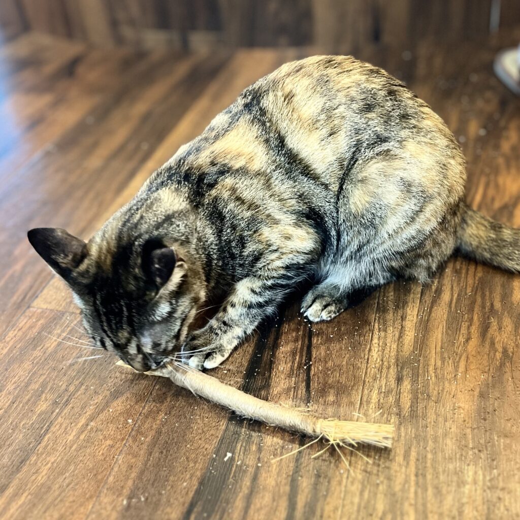 ご寄付頂いたまたたび棒、久しぶりにだしてみました。何回か出しているのでもう大分匂いも薄れてきているとは思うのですが、みんなすぐに気が付いて集まってきました。お嬢様方も夢中。すりすりと可愛い仕草をみせてくれています。日頃のお疲れをいやしてくださいませ🥰