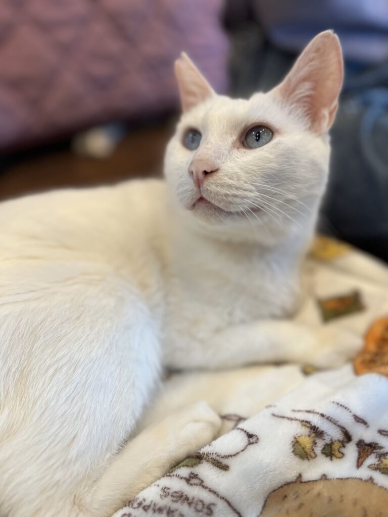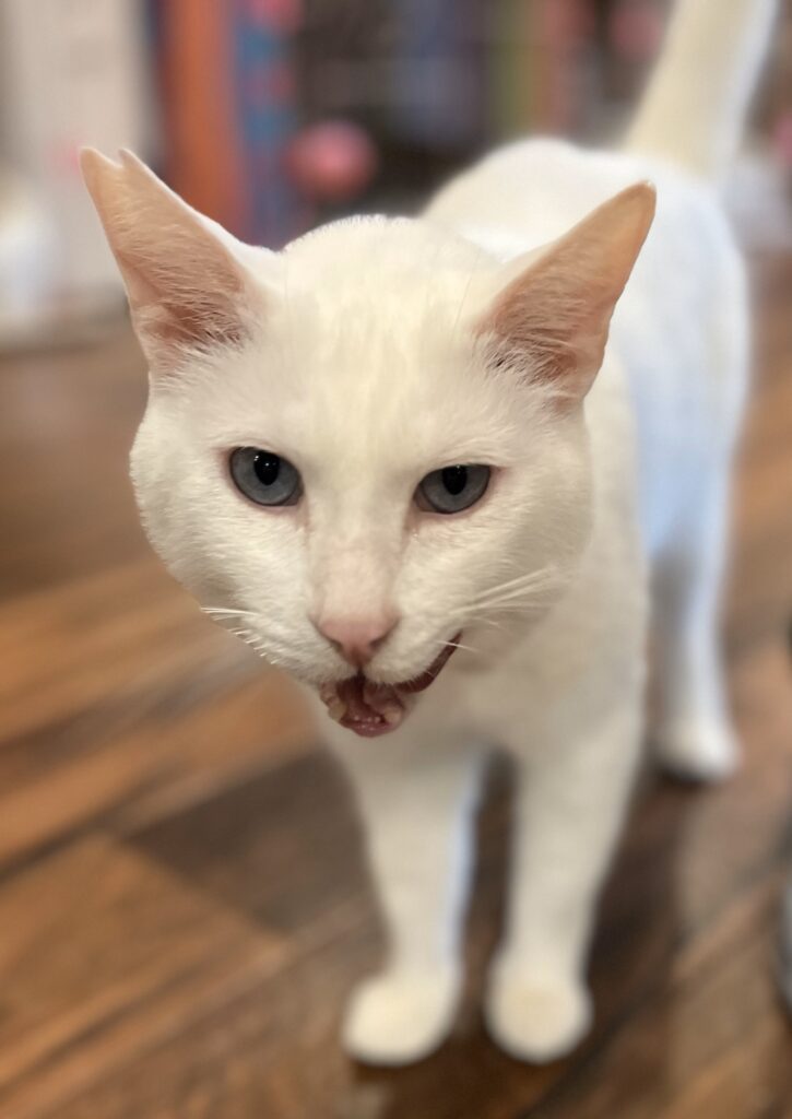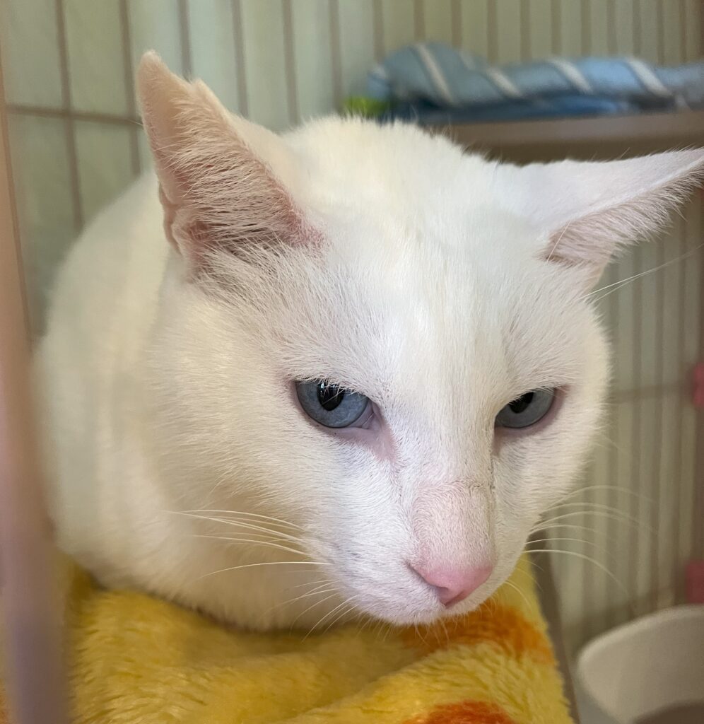 すーにゃんにやって来た時から、歯茎とリンパの辺りが腫れていたアクア。診察してもらった結果、歯石が溜まっていて炎症をおこしているとの事で、歯石取りをすることに。全身麻酔をかけて行うことから、前日の夜から絶食、絶飲💦病院に行く時も大人しくキャリーに入ってくれました。夕方には無事に施術終了(虫歯もあって、6本も抜歯しました🙀)。その晩は、麻酔が残っていてフラフラなので保護主さん宅でお泊り。翌日の夜にすーにゃんへ戻ってきました。絶食が続いたのでお腹は空いていたようで、お薬を混ぜたおやつも最初は勢いよく舐めてくれましたが、口の中が痛いのかなかなか食べきれませんでした。1週間ほどパウチや缶詰など柔らかめのご飯をあげてケージの中で療養。その後、カリカリのご飯を食べられるようになったので、やっとケージの外に。仔猫と遊んだり、猫じゃらしに飛びついたりとすっかり元気になりました。がんばったねアクア👍