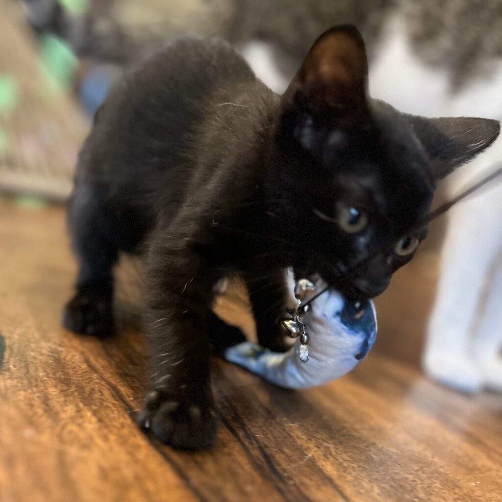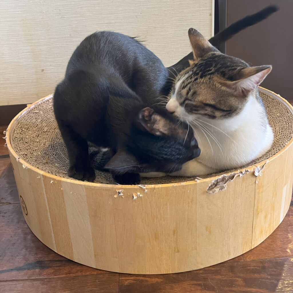 6月に入店してすーにゃんで魅力を振りまいてくれていた仔猫のクローバーが、本日(9/3)トライアルに出発しました。里親さんは、当店のライブ配信をずっと見て下さっていた方でクローバーの大ファンになってくれていました。先住の猫さんを大分前に亡くされて寂しい思いはされていたのですが、特に次の子を探しているという事ではありませんでした。ですが、クローバーに一目ぼれ。ダメもとで保護主さんにトライアルの件をお話ししたところ、面談でのお話次第で大丈夫とのお返事をいただき、この度、無事に面談を終えてトライアルに出ていきました。関東からお迎えに来て下さった里親さん、キャリーバッグに入れて大事に大事に抱きかかえて帰られました。クローバーに幸あれ💖