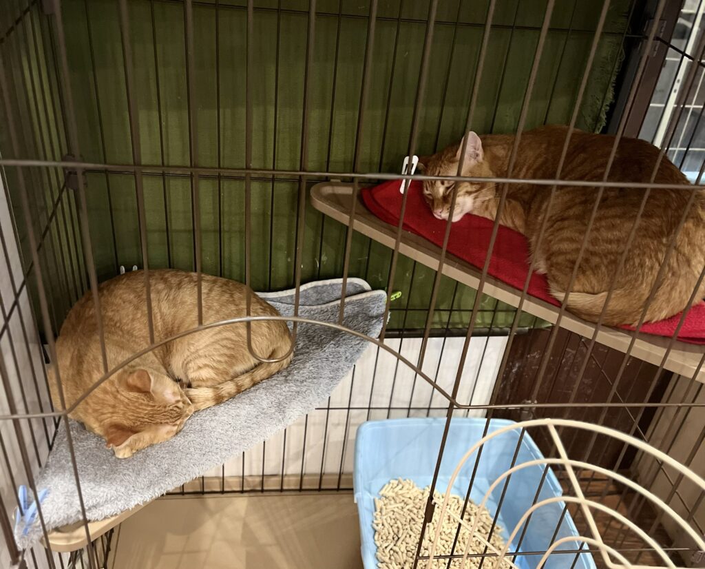 すーにゃんには兄弟でいるニャンスタッフたちが何組かいます。みんな、それぞれ仲良く過ごしています。これは、別のスタッフから聞いた話ですが、今日はれいじとゴルゴが口喧嘩(❓)でうるさかったそう。見ていると、ひと段落した後につよしが「大丈夫❓」とれいじをグルーミング。ゴルゴの方はきいろが加勢していたそうです。いつもはバラバラに過ごしていても肝心な時は団結するようですね💕