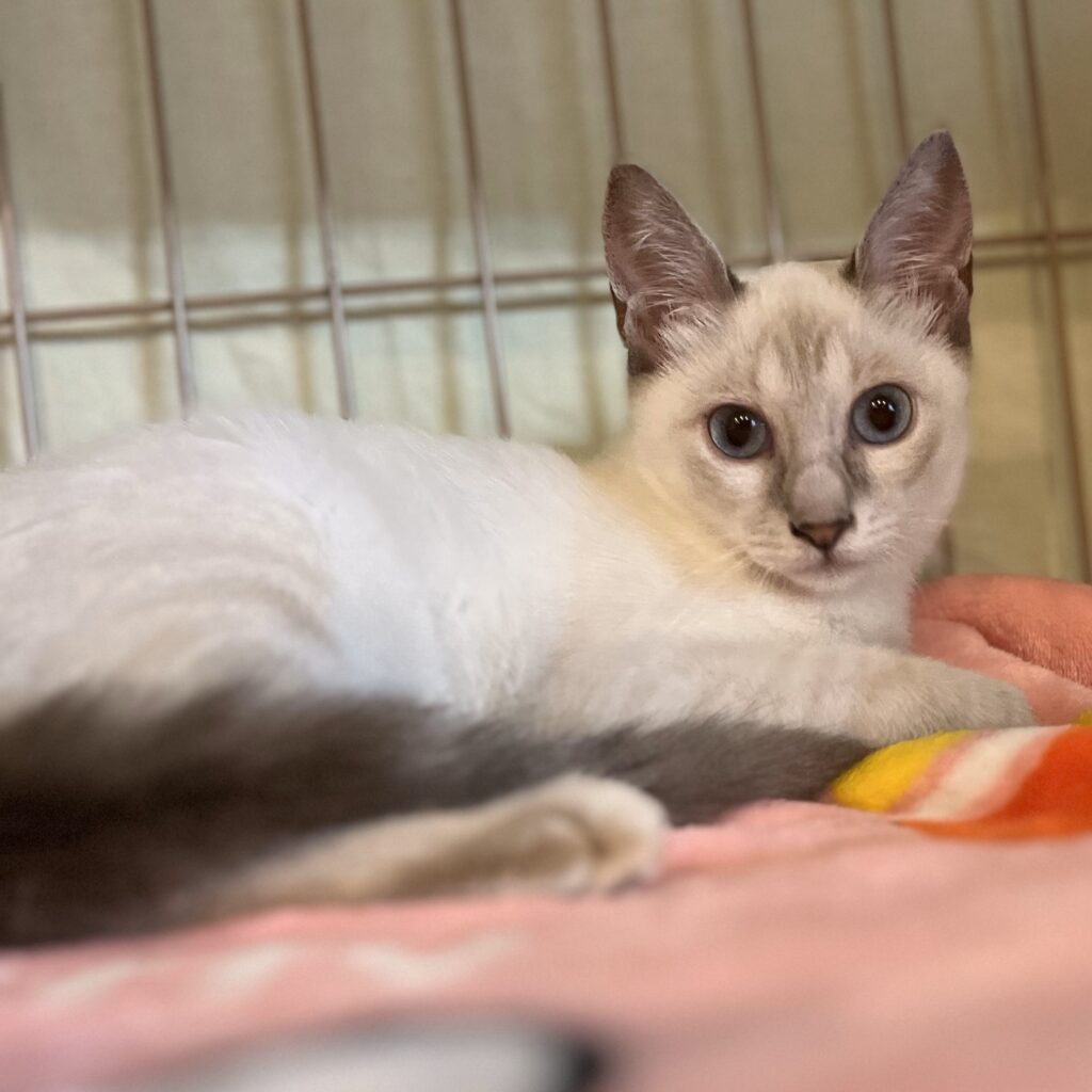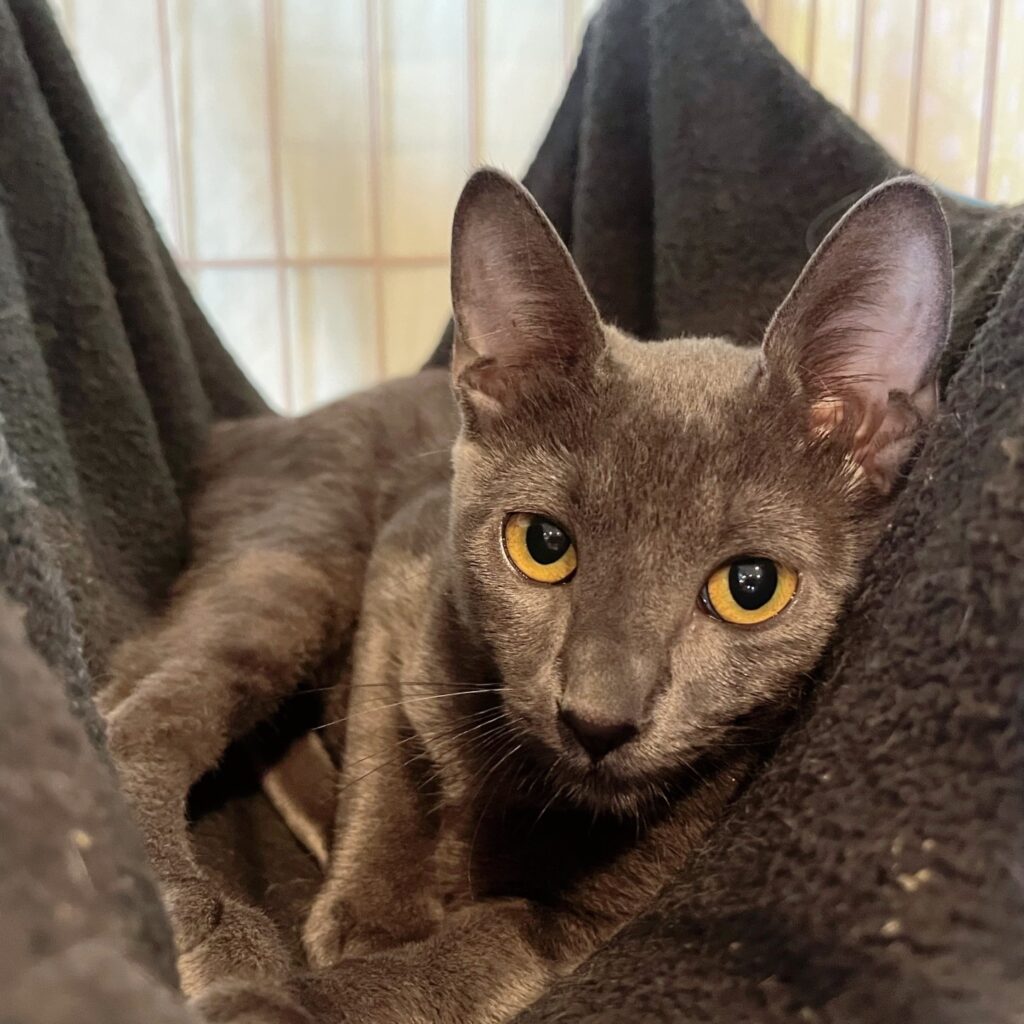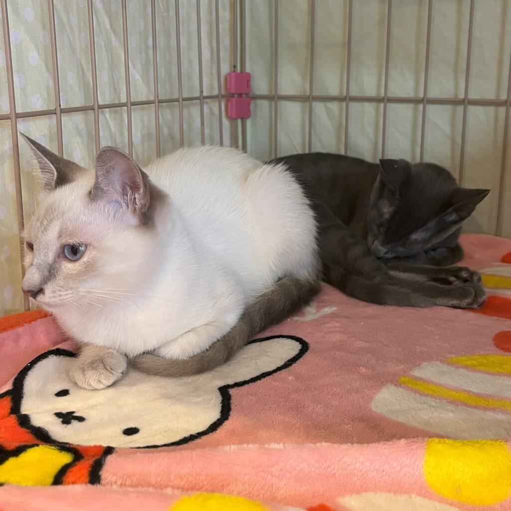 9月5日に新しい仔ニャンスタッフが加わりました。綺麗な姉妹の仔ニャンです。名前は「サツキ」と「メイ」。サツキは、お鼻、耳の先、しっぽがこげ茶色でシャム猫系。メイは青みがかったグレーのロシアンブルー系。どちらもとても可愛い女の子です。入店して1週間なので、まだまだ雰囲気に慣れずに少しびくびくしていることが多いですが、少しずつ撫でて貰うのにも慣れてきています。夜、閉店するとケージの中で姉妹でじゃれあっているのがとても可愛いです。ぜひ、会いに来てくださいませ😽