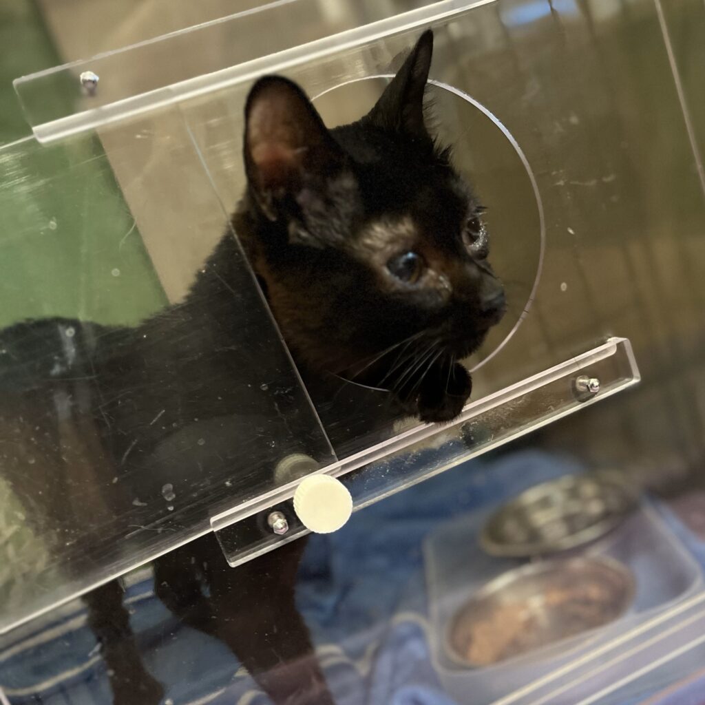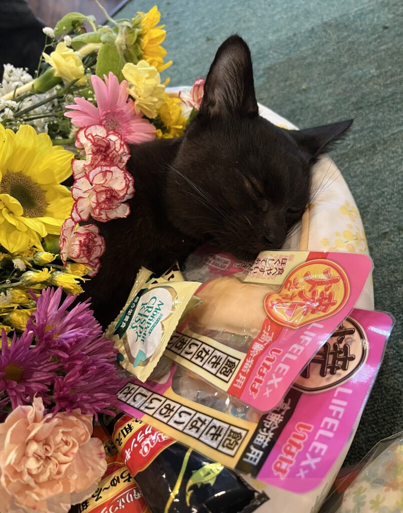 漏斗胸の手術にむけてすーにゃんから保護主さんの所へ戻り、体調を整えつつ手術に向けて頑張っていた黒猫のしじみくんが11月9日の午前3時頃に虹の橋を渡りました。来店して頂いたの皆様や遠方の方からもご寄付を頂きたくさんのご支援を頂きました。本当にありがとうございました。苦しまずに穏やかに旅立ったそうです。最後にすーにゃんにも連れてきていただき可愛がっていただいた皆様ともお別れをすることも出来ました。今にも目を開きそうな本当に穏やかな表情でした。しじみ、もう苦しくないよ。いっぱい走っていっぱい遊んでね😿🥹