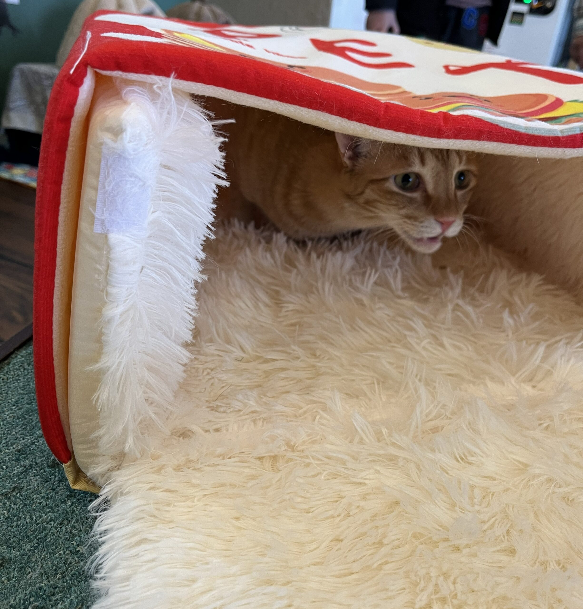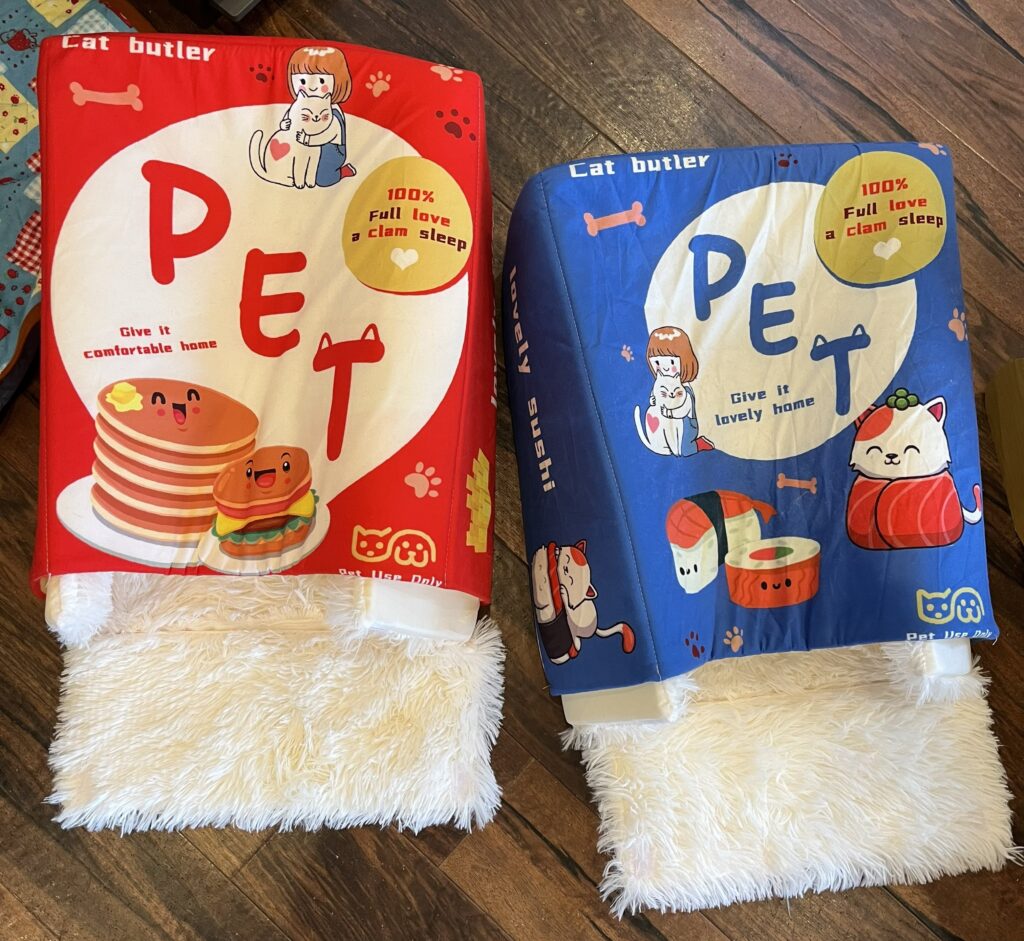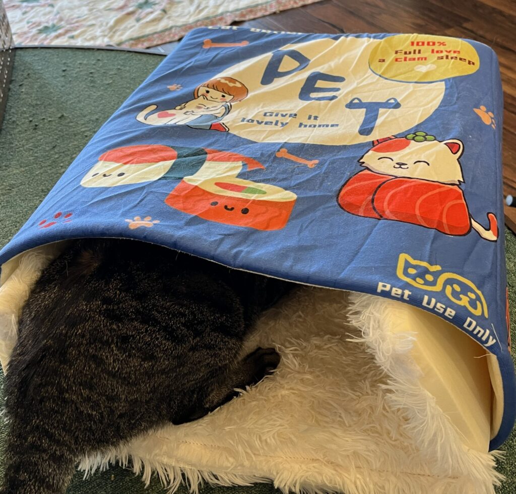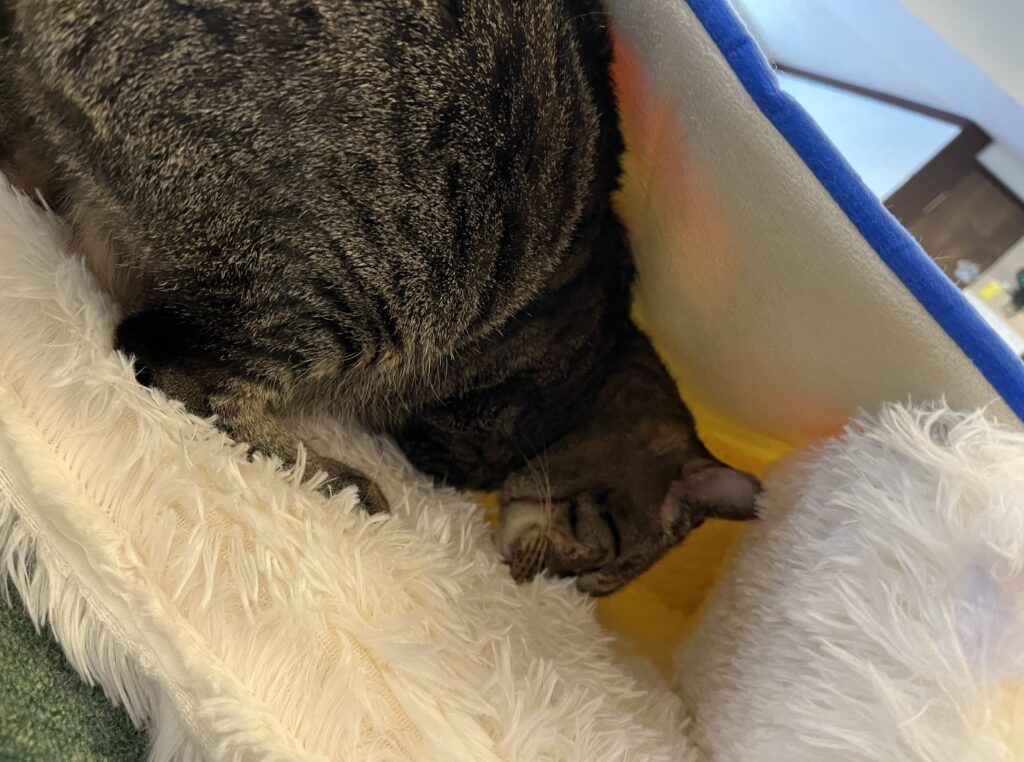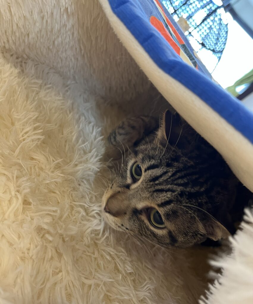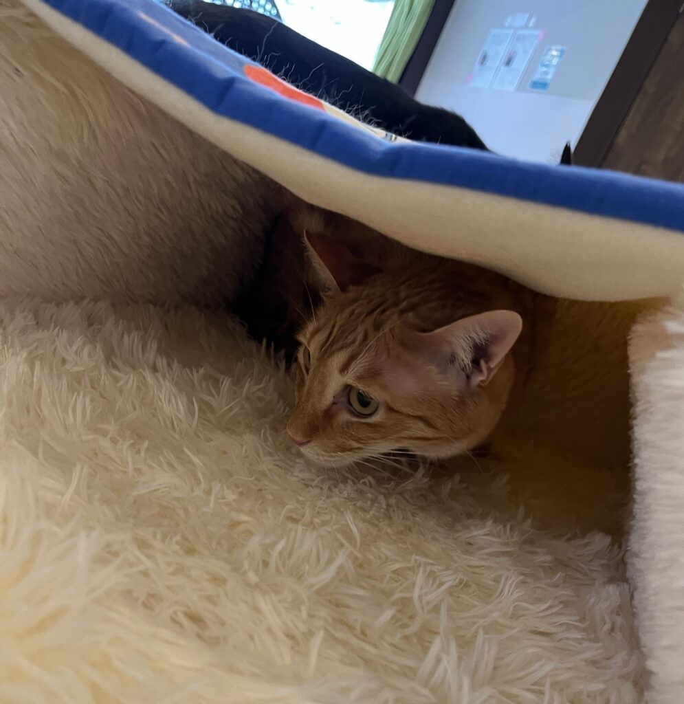 新しい猫ベッドをご寄付をいただきました。早速、店内に置いてみると新しい物好きの兄弟が覗きに来たり、入ってみたりと堪能しております。(ゴルゴは早速つぶしてましたけど💦)