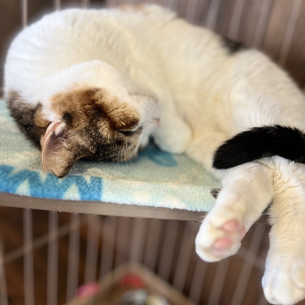 今日はなんだかまったりの日らしく、ニャンスタッフたちはほぼ全員寝ております😅若干名カメラを向けたため目を開けておりますが・・・。気持ち良さそうね💕私もご一緒したいわ💤