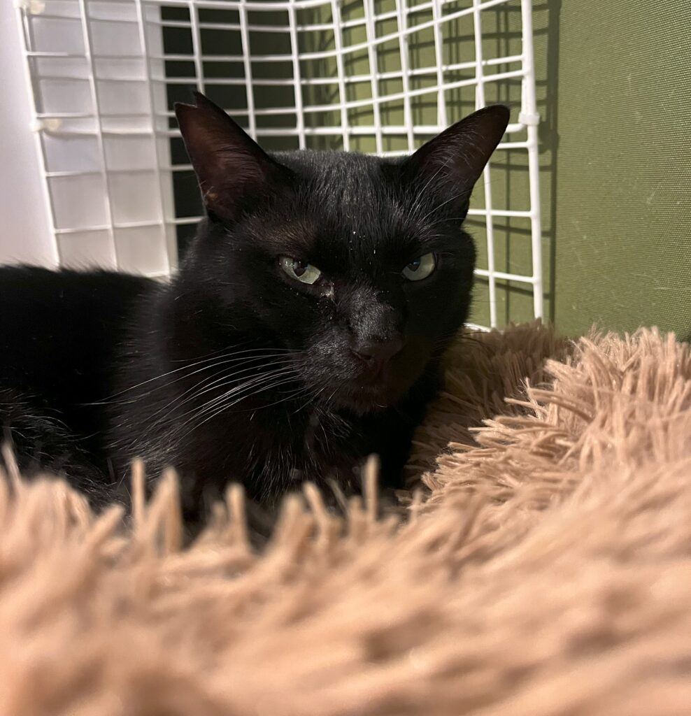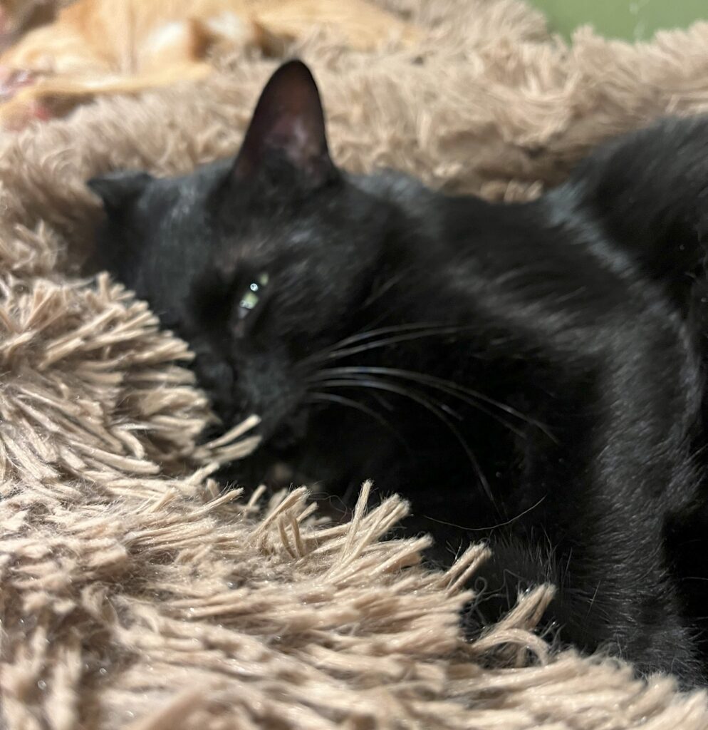 厳つい名前とは反対に鳴き声がほんとに可愛いゴルゴ。お客様が来ると「にゃ~💖」となきながら寄っていきトントン要求。ただ、お客様のうしろに回って待っているので気づいてもらえない事もしばしば😅トントンしてもらうと体をくねくねさせて喜び(?)ます。ですが、チャールズが正式譲渡となっていなくなりパワーバランスが壊れたのか、時々美桜やきゅーを追いかけまわしたりしています。派手に走り回り何やかやひっくり返し大騒ぎです。近頃は体の大きなれいじに押され気味。どうなる事やら😫😣