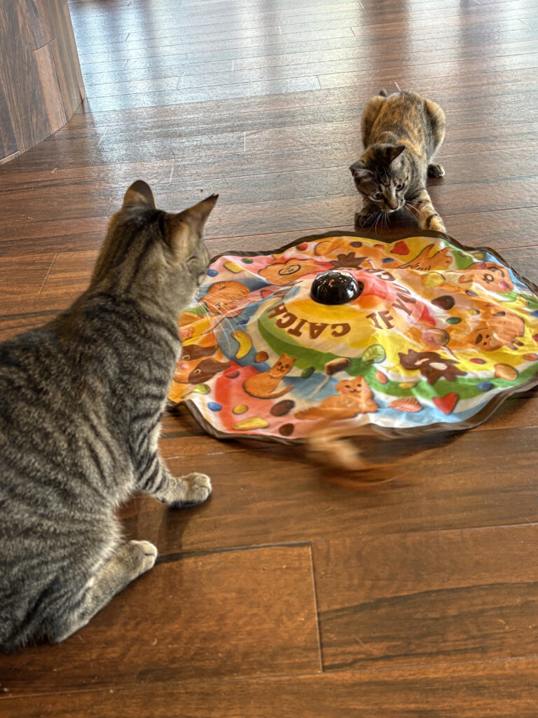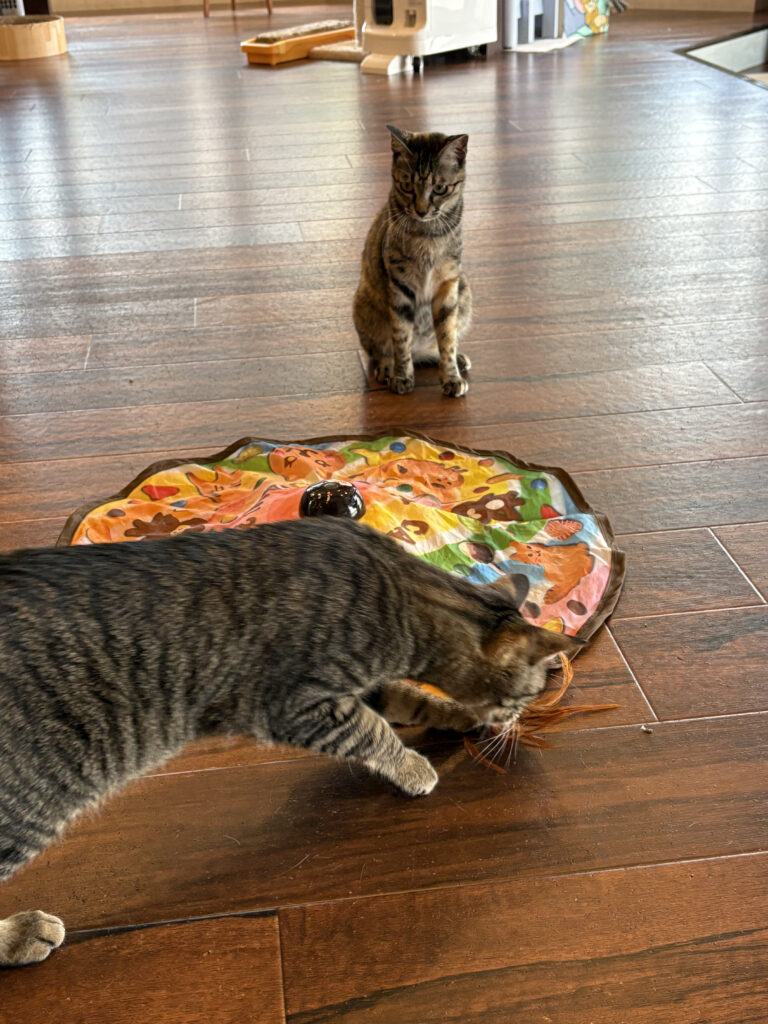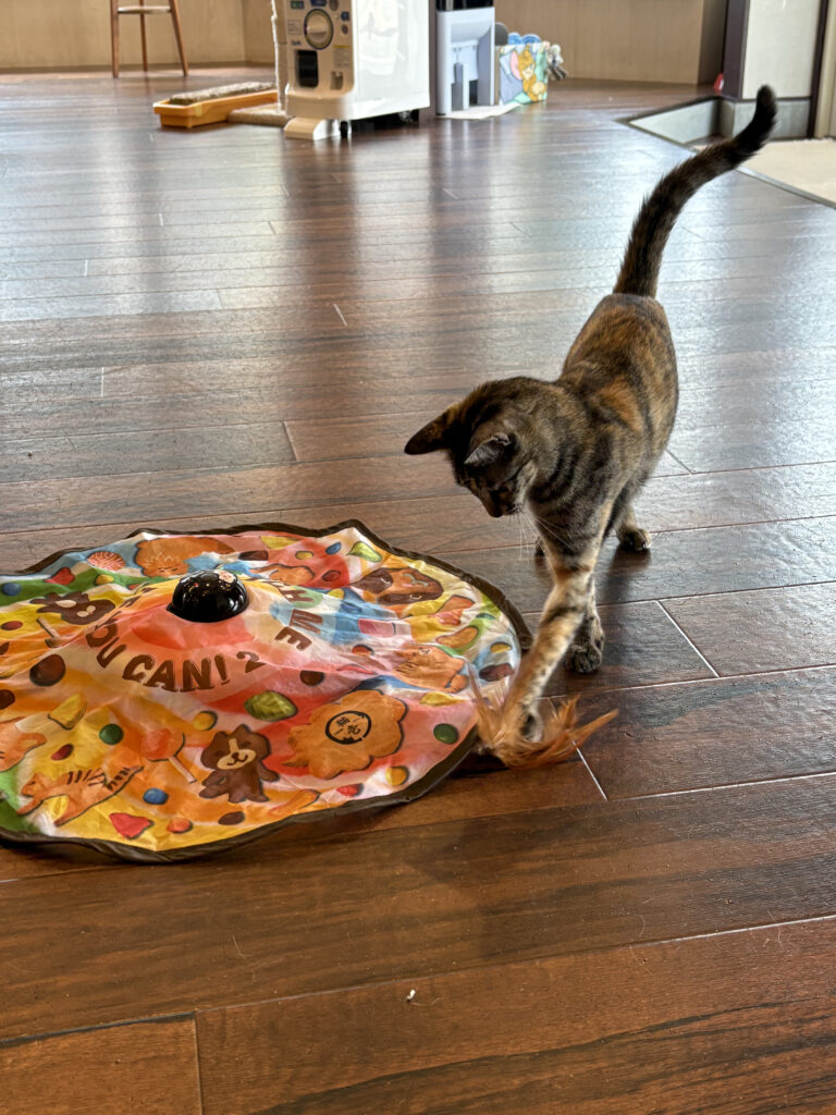 ルフィがトライアルに出てしまい、一緒に遊んでくれる子がいなくなったニコ。先輩猫たちはほとんど寝てしまい、誘ってものってくれません。なので、今日は「catch me if you can」(自動のねこじゃらしです)をニコの為だけに出してみました。最初は夢中で遊んでいましたがやはり相手は猫がいいみたいです。時にはつよしが相手をしてくれる事もありますが、今日はダメみたい💦ニコは猫と遊ぶのが大好きなので、多頭飼いのお家に貰われていくのがいいのかなぁと思う今日この頃です。
