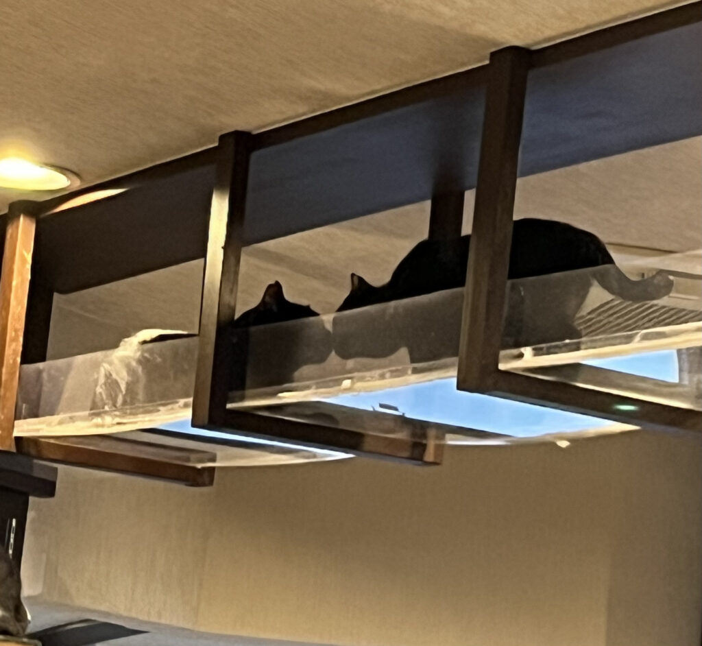 少し体調を崩したニャンスタッフが増えたため、ハムのケージからの卒業を強行しました💦(ごめんね~🙏🏻)でも、無理やり引きずり出したのではなくケージを開放してみました。出ないかなぁと心配しておりましたが、案外あっさりと出てくれて自分で居場所もしっかり確保していました。今ではすっかり落ち着いて自分なりに楽しんでいる様子です。Good👍🏻
