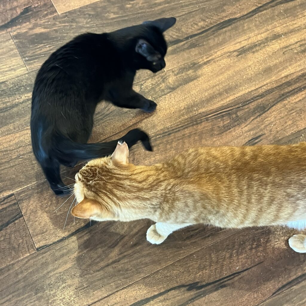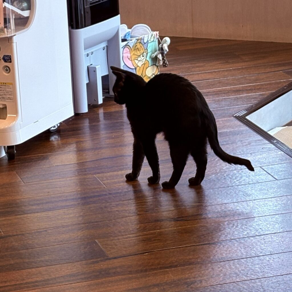 臆病だとばかり思っていたハムですが、近頃はもしかしてマイペースなのかもと思っています。自分のペースで睡眠を確保して遊びたい時にかまってもらい、夕方にはしっかりとご飯を食べるという感じ。猫らしい猫ちゃんですね。おやつにがっついて寄ってくることもなく、「貰えたら貰うよ」っているスタンス☺️ゴルゴやきいろとは同じ黒猫と思っているのかはわかりませんが、何となく仲良し💕隣のベッドで寝たりしています。3匹ならんでいると家族❓(父、母、娘)みたいに見えます🤣