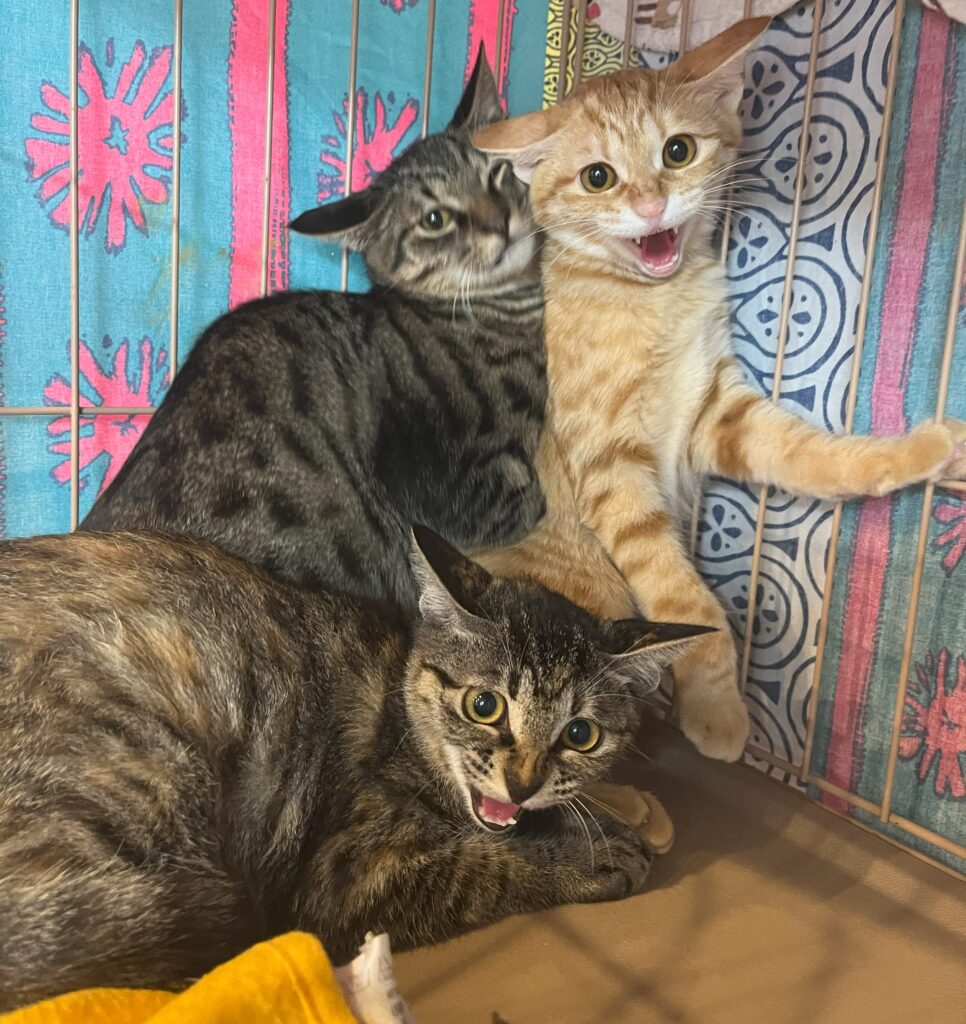 先月にすーにゃんにやったきた仔ニャンスタッフのルフィ・ナミ・ニコ。入店時は、ケージカバーを開けただけでも「シャー!」とすごい顔で威嚇され、手を出そうものなら高速猫パンチ💦3週間近くたった現在は、少し顔も穏やかになり「シャー」の勢いもおさまってきています。ペロペロおやつを貰うと満足そうに毛づくろい。ご飯もしっかり食べています。この仔たちがゴロゴロと甘えてくるのが楽しみでたまりません。