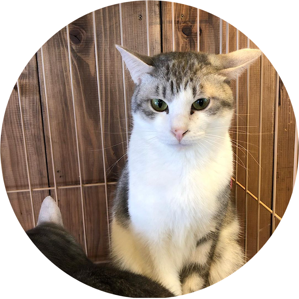 男の子。サバ白。2021/11に兄弟のトムーと一緒に入店。