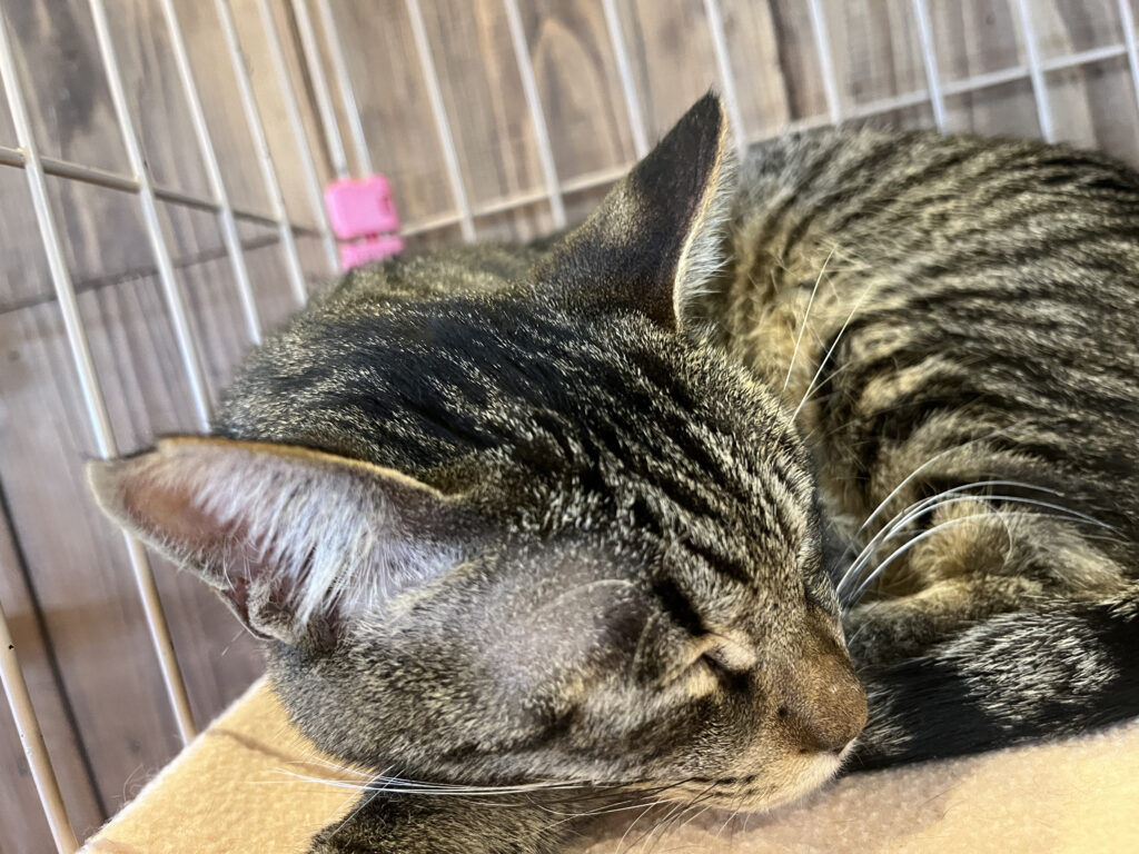 ご来店いただいたお客様から「耳の先が切れているようですが大丈夫ですか?」と心配のお声を頂く事があります。耳カットは不妊手術が済んでいる印なのです。その形から「さくら耳」または「さくら猫」と呼ばれています。飼い主がいない猫を地域の理解と協力で見守っていく「地域猫」と呼ばれる猫たちがいるのをご存じでしょうか?野良猫を地域猫にするにはTNRが必要となります。TNRとは、Trap(捕獲)・Neuter(不妊手術をする)・Return(元の場所に戻す)の頭文字を取ったものです。地域に戻す際に再捕獲されないために耳を少しカットして目印にします。「え~、痛くないの?」「可哀そう」という方もいらっしゃいますが手術は全身麻酔で行われその麻酔が効いている間にカットを行うので大丈夫です。ちなみに男の子は右耳、女の子は左耳カットです。仔猫や人馴れし過ぎで虐待などの犠牲になりそうな子、ケガや病気などでお外に返すと心配な子は地域に返さずそのまま保護し里親さんを探すこともあります。そのような子は耳カットをしない場合もあります。