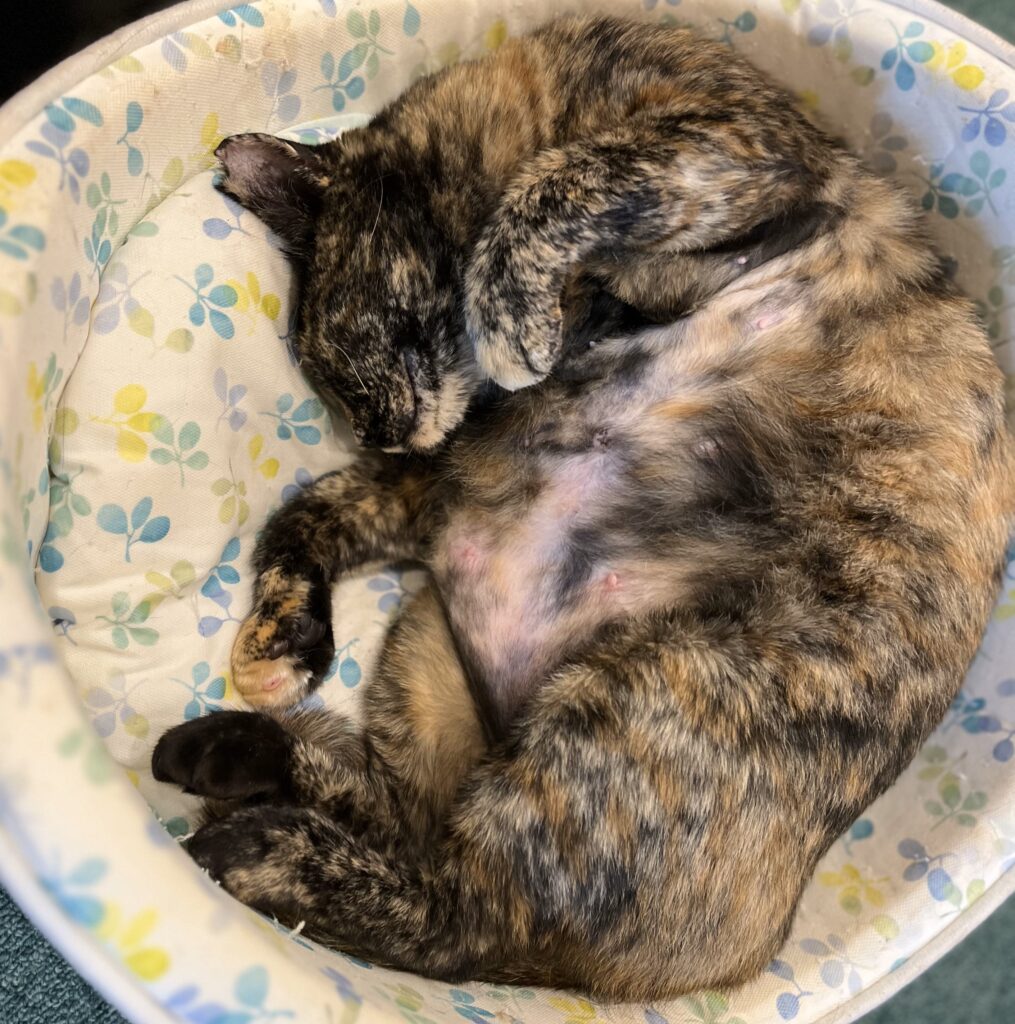自由気ままに寝ているように見える猫ちゃんたちの寝姿。その寝姿に性格がでているのをご存じでしょうか?気温やリラックス度によって変わるのはもちろんですが、猫の性格によっても寝姿は違ってきます。お腹を天井に向けて寝る寝姿。いわゆる「ヘソ天」で寝る子は、おおらかでわんぱっくな猫ちゃんが多いようです。(仔猫にもよく見られます。)弱点をさらけ出す寝姿なので、この寝姿を見せてくれるようになったら信頼してもらった証でもありますね。当店のびさくのように高いところで寝るのが好きな子は、慎重な性格。高い所から周囲を見渡し、全体を把握しようとしています。丸まって寝る子(ニャンモナイト寝?)は、怖がりの神経質タイプ。ほとんどの猫ちゃんがこの寝姿をすることが多いようですね。ただし、意識が無いように見えたり、口を開けて荒い呼吸をしているように感じる寝方の時は要注意です。すぐに、動物病院に連れて行きましょう。愛猫がどんな寝方をしているのか、飼い主さんはぜひ観察してみてくださいね!(参考:ねこの気持ち WEB MAGAZINE)