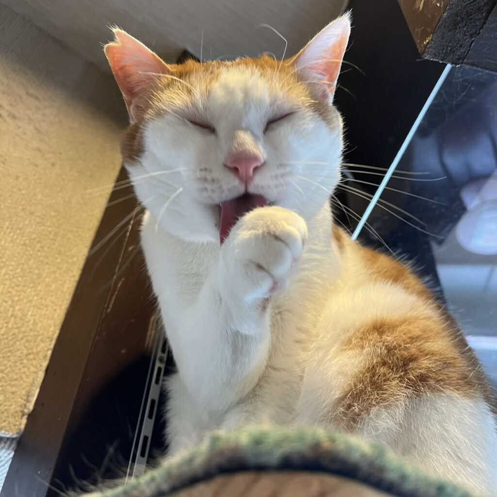 この季節になると花粉症の症状が出始める人も多いかと思います。すーにゃんの常連のお客様もスタッフも何人か症状が出て困っているようです💦ニャンスタッフの中にくしゃみをする子が出て来たので猫も花粉症?と思いましたが、こちらは猫カゼのようです。確かに猫にも花粉症があるのですが、くしゃみや鼻水という症状よりも皮膚の症状にでるようです。体を掻く、舐める、噛むといった行動が続く場合は、かゆみのサインかも。グルーミングを過剰にするようであれば要注意。定期的なブラッシングや時には濡れタオルなどで体を拭いてあげるなどの対策が必要です。それでも症状が出る場合は受診してお薬を処方してもらいましょう。