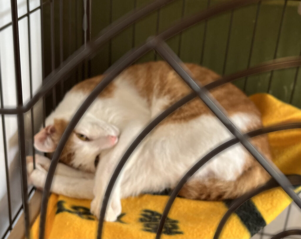 ケージの中で療養中のびさく。これからのお薬の事もあるので検診に行きました。診察の結果は「アトピー性皮膚炎」痒かったね。不快だったよね😣原因は、人間と同... -