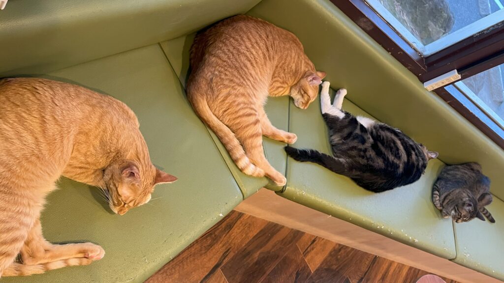 ニャンスタッフたちは日向ぼっこ🌞が大好きです。かなり暑くなってきたこの頃でも出窓のニャンモックにゴロンと寝転がってみたり、西日がまぶしい長椅子に寝そべ... -