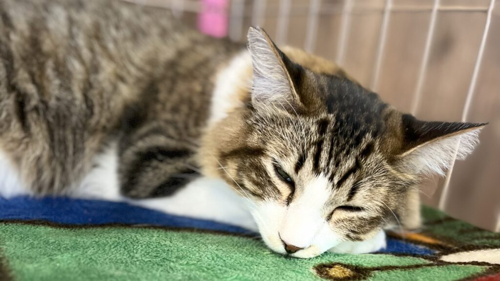 トムよりは社交性がある(?)タフィーは他のニャンスタッフたちとも関わることが多いです。特にきゅうにはご執心でゴロゴロと甘えてグルーミングをねだります。きゅうが... -