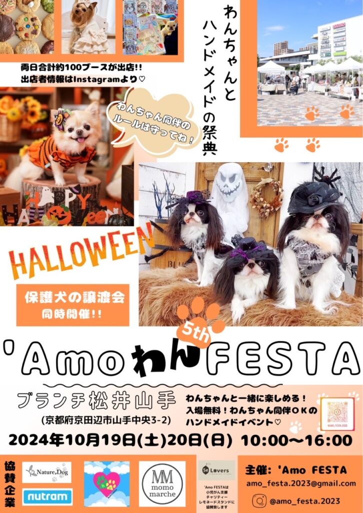 10月19日(土)・20日(日)の2日間、京田辺市のブランチ松井山手で行われるマルシェ「Amo わんFESTA」にすーにゃんが出店します。店内でおなじみのレジンの手作りアクセサリー他何点かを販売させていただきます。ハンドメイドイベントですので、いろいろな商品をご覧いただけると思います。「わんFESTA」という事で、当日は保護犬の譲渡会も開催されます。ねこちゃん好きの方もワンちゃん好きの方も楽しんで頂けるイベントです。ぜひ、足をお運びくださいませ🤗