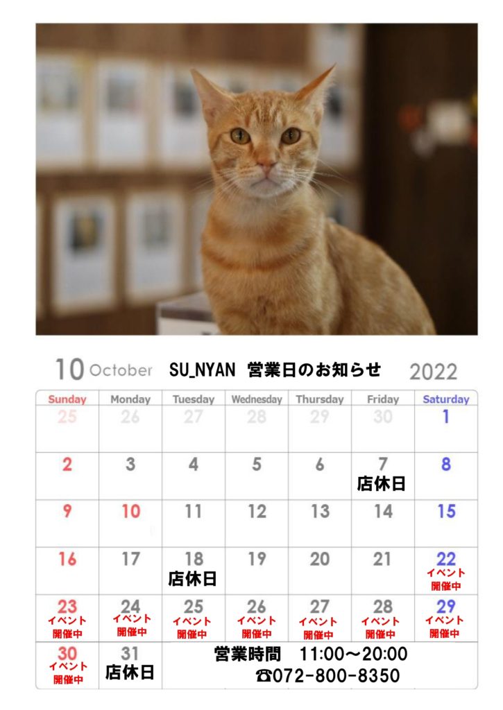 10月の営業日 2022 10/04 営業日 2022年10月4日2023年11月5日 ※ご来店の際は、必ず、靴下とマスクの着用をお願い致します。 営業日 よかったらシェアしてね! URLをコピーしました! おかげさまで1周年 キャンペーンのお知らせ 猫グッズ販売中