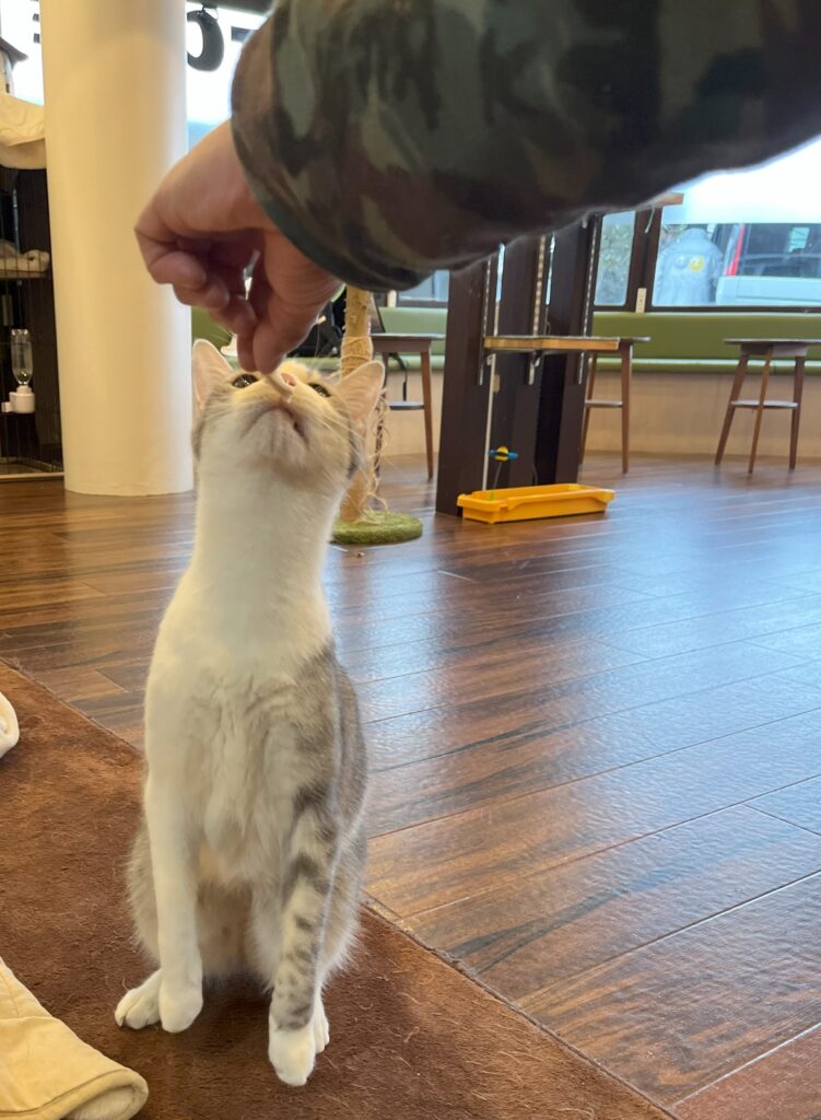 *店内では、猫用のおやつを販売しております。おやつをあげると人気者になれます😁