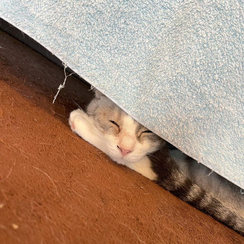 以前、ある保護団体の施設での多頭飼育崩壊のニュースを目にしたことがあります。助けてあげたい気持ちの一心で保護した子たちを、人手不足や資金不足で一頭一頭に丁寧な世話が出来ない状態になってしまい、劣悪な環境の中で亡くなってしまう子もいたようです。代表の方は可哀そうな猫や犬を放っておけずに連れて帰ってしまっていました。「助けてあげたい」「可哀そう」その気持ちは大切でよくわかるのですが、自分の生活や健康を損なってしまっては元も子もなくなってしまうと思うのは私だけでしょうか?「可哀そう」だけではどうにもならない限界があります。保護活動を継続していくことは本当に難しい事だと思います。しっかりとした基盤をもって、いろいろな方々にもご支援もお願いしなくてはなりません。沢山の方々の協力を得てこそ成り立つのだと思います。すーにゃんも沢山の方々のご支援を頂いております。本当にありがとうございます。まだまだ、充分な活動はできていないかもしれませんが、出来る範囲で継続的に猫ちゃんたちの幸せのために頑張りたいと思います。ニャンスタッフ達の可愛い寝顔を見ていてふと心に誓った次第です😅🥰