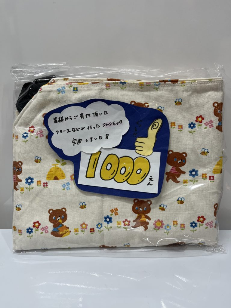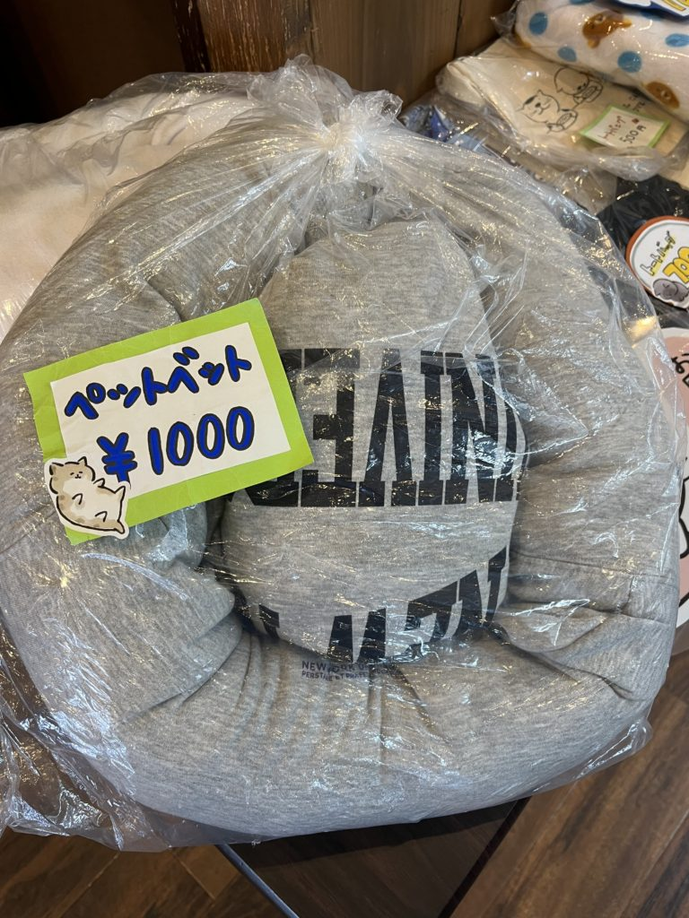 みなさまからご寄付頂いた古着で製作した猫ベッドとニャンモック。スタッフがオススメの猫グッズです。(各 1,000円)